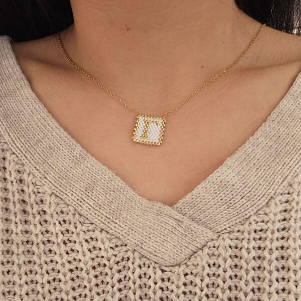 Γυναικείο Ατσάλινο Κολιέ Με Χρυσή Αλυσίδα Και Κρεμαστό Μονόγραμμα Με Λευκές Και Χρυσές Χάντρες.Η Αλυσίδα Διαθέτει Αυξομείωση Και Προσαρμόζεται Στο Ύψος Που Επιθυμείτε.Είναι Υποαλλεργικά,Και Δεν Μαυρίζουν