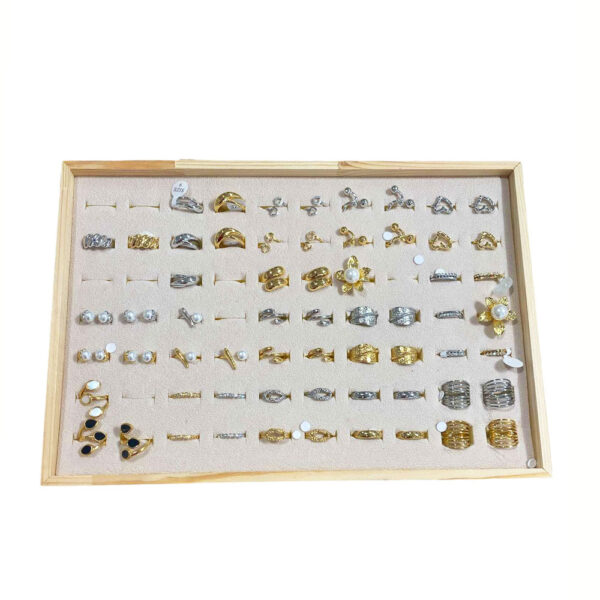 Σταντ προβολής κοσμημάτων (δαχτυλίδια) με ξύλινες και βελούδινες λεπτομέρειες.